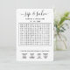 Invitación a la boda de Sip y Search | Diseño de rompecabezas de búsqueda de palabras personalizado Hacer que su invitación sea inolvidable con nuestra invitación a bodas de Sip y Search | Diseño de rompecabezas de búsqueda de palabras personalizado — un giro lúdico e interactivo en la papelería boda tradicional. Diseñado para entretener y participar, este rompecabezas de búsqueda de palabras personalizado permite a sus invitados celebrar su historia de amor mientras descubren los detalles de su gran día. Ideal para duchas de novios, fiestas de compromiso, bodas no tradicionales o parejas divertidas, esta invitación combina pistas personalizados, palabras ocultas y un elegante diseño moderno para crear una experiencia que sus huéspedes disfrutarán de la lectura. Es perfecto para añadir un toque personal y único a tu papelería mientras se establece un tono alegre y alegre. Personalizar con sus nombres, fecha de boda, lugar y una lista a medida de palabras como lugares, fechas, apodos o chistes internos. Cada rompecabezas es completamente único e incluso se puede emparejar con un código QR enlazando a su sitio web boda o formulario RSVP en línea. Impreso en cartuchos premium y disponible en una gama de colores que incluyen tonos negros y blancos, neutros y paletas de temática boda, esta invitación encaja maravillosamente en cualquier suite boda moderna, minimalista o creativa. Tanto si se coloca dentro de un sobre formal como si se entrega en un evento casual, a sus invitados les encantará resolver el rompecabezas mientras toman un trago y aprenden más sobre su viaje en pareja. 🖤 Haga clic en Personalizar Ahora para crear su invitación de rompecabezas de sorbo y Boda de búsqueda y añadir un toque divertido a su eternidad. Invitación a la búsqueda de palabras bodas, invitación a bodas de rompecabezas personalizados, invitación a sorber y buscar, invitación a juegos de ducha de novias, diseño de invitación a bodas divertidas, tarjeta de rompecabezas boda personalizada, búsqueda de palabras en blanco y negro, inserción interactiva de boda de rompecabezas.