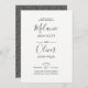 Invite a sus huéspedes a su boda con este clásico gris oscuro y una invitación con un magnífico fondo estampado y una moderna tipografía con letras a mano. © Mini Impresiones Moi