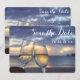 Tarjetas redondas de Save the Date de boda con puesta de sol en la playa con texto y foto cambiables - puedes agregar tus fotos y cambiar el texto