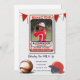 Step up to the plate with this Rookie of the Year photo birthday invitation with vintage baseball card aesthetic. Perfect for your little slugger's big day, this sporty invitation is designed to look like a vintage baseball card- complete with your child's photo, name and age. Featuring classic red, navy and cream colors with bunting flags, ball and helmet. Whether your rookie is turning 1 or 10, this personalized invite is sure to be a home run for any young baseball fan!