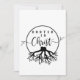 Con raíces en Cristo, este diseño presenta un diseño en blanco y negro con raíces de árbol y texto que dice "Rootado en Cristo".