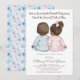 ¡Anuncia a tu pequeño con nuestra encantadora Invitación de Revelación de Género! Con una adorable bebé afroamericana y un bebé varón adornados con pijamas rosas y azules, esta invitación emana simplicidad y encanto. ¡Comparte la emoción de tu celebración de revelación de género con este diseño encantador y conmovedor!