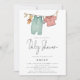 Ropa de Moda Boho en la línea de lavado Baby Shower. ducha neutra de género con un conjunto de guiones informales para Baby Shower y el resto del texto que puedes personalizar fácilmente.