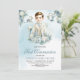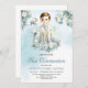 El diseño caprichoso de la invitación a Boy First Communion incluye un lujoso ramo de coloridas flores azules y blancas mezcladas salsas verdes, envuelve elegantemente al lindo niño con atuendo religioso formal, como tierno abrazo de mamá. Tipografía de escritura dibujada a mano. No dudes en contactarme para encontrar elementos coincidentes o para personalizarlos. Bebé de Rosas de Rubor ©