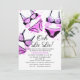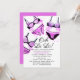 Invitaciones de despedida de soltera con ropa interior de novia con brillo, características de ropa interior rosa, morada y negra con el texto "Ooh La La!" en escritura de caligrafía negra moderna con la información de su fiesta de ropa interior personalizada, fiesta de bragas o ducha de novia debajo. Personalice editando el texto en los cuadros de texto proporcionados. Creado por ©Evco Studio www.zazzle.com/store/evcostudio
