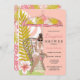 La invitación de ropa interior tropical de la ducha de la novia presenta brillo, flores rosadas y coral, paraguas y novia por casar con cabello rubio, marrón o rojo. También disponible con tono de piel oscura.