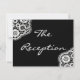 Esta invitación a la recepción de bodas de 5,5" x 4,25" es correcta o un sofisticado boda en blanco y negro que ofrece un toque más suave, le encantará esta serie original de Leslie Sigal Javorek. Una pintura digital de finos cortes y encajes doily contra un fondo sólido: encaje negro sobre lino blanco en un lado se invierte a encaje blanco sobre negro.