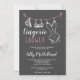 Una moderna tipografía, moda de bonito y lindas telas pintadas a mano en rosa y blanco y gris con ropa interior, corsé, sostén y ropa interior de ropa interior invitación a una fiesta de duchas de novias con una moderna y elegante tipografía caligráfica.