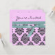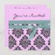 el diseño tiene un elegante diseño de amortiguador negro con un fondo rosa claro con una cinta turquesa falsa. El reverso de la tarjeta tiene una linda rima para los gemelos. todo el texto es completamente personalizable. también puede alterar el color de fondo de la tarjeta haciendo clic en "personalizar" y luego en "color". la invitación se muestra aquí en un acabado de lino. hay otros acabados disponibles.