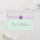 Suaves colores pastel de blanco, lavanda y verde menta con un delicado motivo de encaje. Incluye una cinta de lavanda y una elegante flor de lavanda. Perfecto para un boda de primavera o verano.