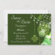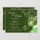 Esta encantadora invitación Save the Date boda presenta un bonito diseño celta con encantadores tréboles y luces en tonos verdes y blancos. Es ideal para cualquier boda y perfecto para las celebraciones irlandesas y del boda del Día de San Patricio. ^