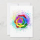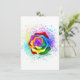 Rosa grande y floreciente con pétalos de arco iris sobre fondo blanco, pintado con salpicaduras de pintura colorida y brillante. 3.ª