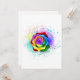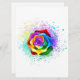 Rosa grande y floreciente con pétalos de arco iris sobre fondo blanco, pintado con salpicaduras de pintura colorida y brillante. 3.ª