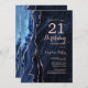 Invitación Rosa azul de la marina Agate de oro 21 cumpleaños