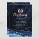 Invitación a la fiesta de cumpleaños número 60 de oro azul marino y rosa. Elegante diseño moderno con acuarela azul real agate fondo geodésico de mármol, rosa purpurina falso de oro y letra de escritura tipográfica. La carta de invitación de moda es perfecta para una elegante celebración del cumpleaños de las mujeres. Invitaciones Zazzle impresas o una plantilla imprimible digital de descarga instantánea.
