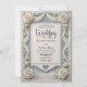 Invitación Rosa azul neoclásica romántica vintage 3D