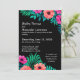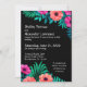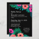 Flores tropicales brillantes de rosa y melocotón aparecen en este impresionante diseño de invitación a la boda con un fondo negro. Añade información sobre tu día de boda especial e impresiona a los invitados con tu estilo. Consulte la coordinación de elementos de esta colección.