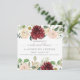 Esta invitación se prepara para una cena de ensayo. Los florales de cascada pintados a mano incluyen un crisantemo rojo burdeos de marsala con rosas blancos ruidosos y un ranunculus pálido combinado con varias ramas de hojas y bayas. El fondo es blanco (pero se puede cambiar). Si se cambia el área del texto seguirá siendo blanca. En el reverso está un patrón suave de vino de borgoña de marsala (que también se puede cambiar) con un elemento de guiso de sauce. SE PUEDE ENCONTRAR UNA COLECCIÓN COMPLETA AQUÍ (copie y pegue el enlace en su navegador: https://bit.ly/2MAf83r ) Art copyright Audrey Jeanne Roberts, todos los derechos reservados.