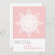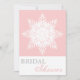 Invitación a la ducha nupcial blanca, rosa copo de nieve, con un copo de nieve blanco sobre fondo rosa suave. Una elección perfecta para los bodas Navidades de invierno de diciembre. Algunos elementos son cortesía de vectorportal.com. Este moderno diseño de plantillas de boda es completamente personalizable que se puede personalizar y forma parte de un conjunto de bodas. Esquema de color: rosa, blanco, gris/gris.