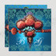INVITACIÓN ROSA CORAL ROJO, MONOGRAMA DAMASCO NEGRO AZUL ACUÁ