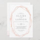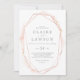 Esta acuarela color oro rosa geométrica en una sola invitación a la boda es perfecta para una boda elegante. El diseño original presenta una acuarela rosa pálido neutro con bonitas formas geométricas de Relieve metalizado de oro rosa y purpurina. Guarde el papel incluyendo los detalles en la parte posterior de la invitación a la boda en lugar de en una tarjeta separada. Incluya también la información de RSVP si su invitado responderá electrónicamente (opcional).