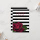 rosa rojo moderno y elegante, texto dorado y boda de rayas negras RSVP. Este hermoso RSVP de banda roja y negra se personaliza fácilmente para tu evento simplemente añadiendo tus detalles en el estilo de letra y color, la redacción y la disposición de tu elección.