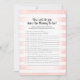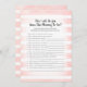 Disfruta jugando este juego de ducha de bebé ¿Quién sabe cuál es la mejor mami? con un fondo de rayas de color blanco, rosa y suave. Conejo lindo, blanco, conejito en la parte posterior con plantillas creadas para usted.