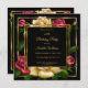 Elegante crema roja Rosa floral Fiesta de cumpleaños negro de oro. Personalizar con sus propios detalles.
