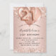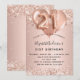 Por un elegante cumpleaños 21. Un rosa de oro falso de aspecto metálico. Decorada con oro rosa, glitte falso rosado, chispas y globos. Personalice y agregue un nombre y detalles del fiesta. El nombre está escrito con un guión de estilo con letras a mano, número 21 con fuentes de estilo globo.