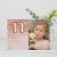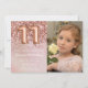 Rosa de fotos oro 11ª invitación a una fiesta de cumpleaños para un chica de 11 años con elegante escritura de escritura y divertidos globos de Relieve metalizado.