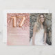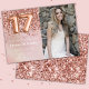 Foto elegante rosa oro 17 cumpleaños invitación a un chica de 17 años con elegante escritura de escritura y divertidos globos de Relieve metalizado.