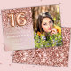 Foto elegante rosa oro 16ª invitación a una fiesta de cumpleaños para un chica de 16 años con elegante escritura de escritura y divertidos globos de Relieve metalizado.