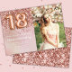 Foto elegante rosa oro 18ª invitación a una fiesta de cumpleaños para un chica de 18 años con elegante escritura de escritura y divertidos globos de Relieve metalizado.