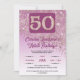 Invitación Rosa de la caída Purpurina de oro 50 cumpleaños