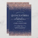 Oro Rosa - Las invitaciones para la celebración del partido Sparkle Girly Quinceanera, Purpurina de la Marina y Rosa de Rubor, incluyen una tipografía de guion hermosa y elegante para la celebración especial de cumpleaños número 15.