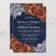 Los huéspedes podrán admirar esta elegante invitación nupcial con hermosos rosas rústicos naranjas y encaje. Simplemente agregue los detalles de su evento en esta plantilla fácil de usar para convertirla en una invitación única.