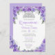 Invitación Rosa de lavanda morada y plata Tiara Quinceanera