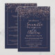 Invitación Rosa de oro confetti azul marino todo en un boda