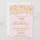 Invitación rosa de oro de la fiesta de cumpleaños 90 Rubor Pi