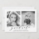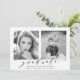 Nuestra elegante fiesta de graduación fotográfica "Ahora y después" invita a mostrar la foto preferida de tu graduado (ahora) así como una foto de un bebé o un bebé (entonces). Cambie los años siguientes a cada foto para reflejar el año de graduación y el año de nacimiento (o se tomó una foto del año). Las invitaciones modernas a las fiestas de graduación muestran "graduados" con un elegante tipo de letra con el nombre del graduado, el nombre de la escuela y el año de clase que se muestra a continuación. El reverso de las invitaciones a las fiestas de graduación de moda muestra los detalles de sus fiestas en un fondo de color rosa rosa.