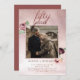 Invitación de celebración de aniversario de bodas de 50 años con foto con brillo de rosa dorado con rosas de acuarela.