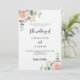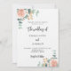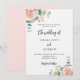 Un fondo blanco chic. Decorado con flores rosadas y doradas, rosas y hojas de eucalipto pintadas con acuarela verde, ramitas, follaje y ramitas de oro falsas. Personalice y agregue sus nombres y detalles.