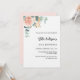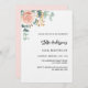 Un fondo blanco moda. Decorada con rosa de oro y floral rosa, flor rosa y hojas de eucalipto de color verde acuático, brotes, vegetación y una falsa primavera dorada. Personalice y agregue su nombre y detalles del fiesta. Atrás: color de fondo dorado rosa.