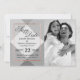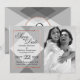 Elegante, moderno y simple contorno de rosa dorado impreso en falso sobre patrón geométrico gris, tarjeta de compromiso Save-the-Date. Este diseño clásico y sofisticado es perfecto para la pareja que se casa, trendy y con estilo. Personaliza con tu propio mensaje en la parte delantera así como una inicial de monograma personalizada en la parte posterior. Todo el diseño de impresión de foto.