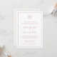Invitación simple a la boda con su monograma en un círculo en la parte superior y los detalles de su boda rodeados de un borde delgado. Sus nombres están en una elegante letra manuscrita. Todos los elementos de diseño son de color rosa rosa polvoriento sobre un fondo blanco y pueden cambiarse en la herramienta de edición de diseño. El diseño clásico y tradicional hace que esta invitación sea ideal para un boda formal.