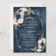 Rosa azul marino y plateado Elegante Quinceanera Invitación