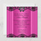 Invitación Rosa Encaje Negro Perla Fiesta de Cumpleaños Elega