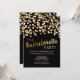 Celebra la futura novia con esta divertida invitación de Bachelorette Party. Se incorpora en el confetti y en las letras una falsa apariencia de oro para simular una apariencia de Relieve metalizado, en busca de una alternativa económica al costoso Relieve metalizado caliente prensado. Todos los detalles de la parte delantera se pueden personalizar y hay espacio en la parte trasera para añadir más información a los clientes.