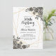 Esta elegante invitación de cumpleaños a la flora incluye una flor rosa con arreglo de hojas en color oro y negro.
