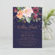 Este otoño la tarjeta de invitación a la boda es perfecta para una ducha nupcial con rosa floral. El diseño presenta un impresionante ramo de flores de color burdeos, melocotón naranja y marsala con tipografía de Relieve metalizado de oro rosa y confeti. La parte posterior cuenta con una hermosa flor que se puede personalizar con el nombre de la futura novia. Nota: Este diseño no tiene Relieve metalizado de oro rosa real. Es un gráfico de alta calidad hecho para parecer un Relieve metalizado de oro rosa.